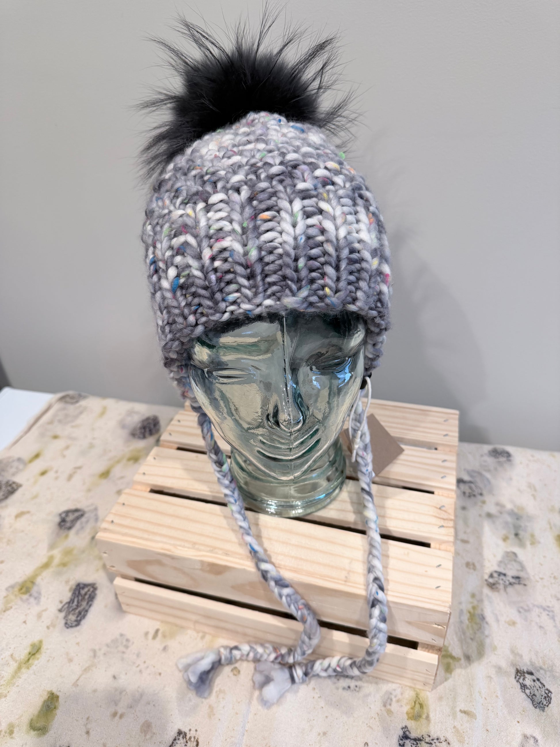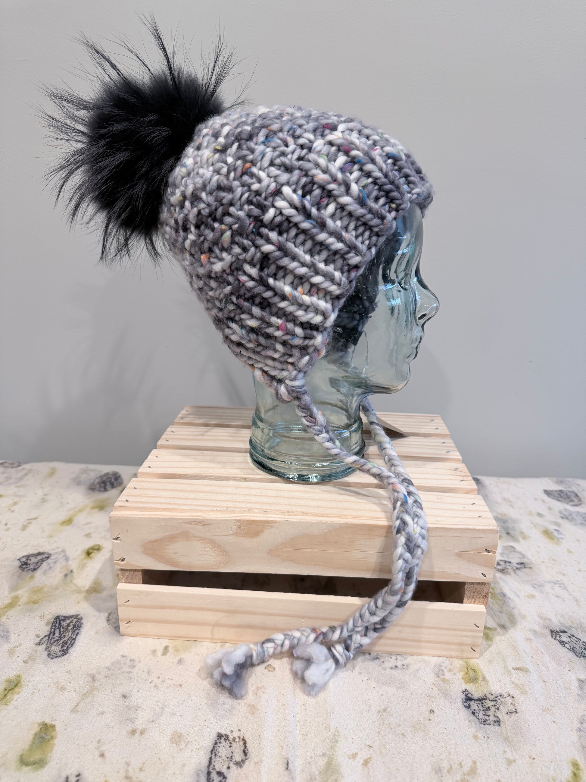 100% Merino Wool bonnet style beanie. Topped with our signature Roadkill Raccoon fur Pom. This style covers your ears and the nape of your neck without feeling restrictive. Fits a wide variety of sizes from your average adult head to the largest of heads because of the opening.